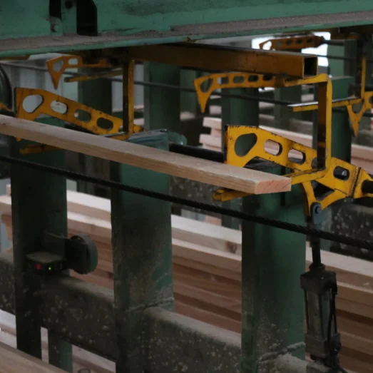 Cada tronco es clasificado por especie, diámetro y calidad antes de entrar en nuestras líneas de aserrado automatizadas (sierras circulares y de cinta). Esto nos permite adaptarnos a la demanda del cliente y fabricar prácticamente cualquier medida. Todo el proceso está supervisado por personal especializado, desde la recepción hasta el envío final.